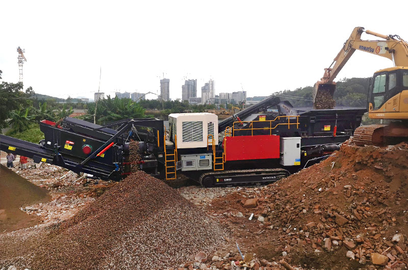 那么如何生產(chǎn),選用什么設(shè)備好呢?建筑垃圾集中在城市周邊,如果建設(shè)固定式生產(chǎn)線,就屬于工廠,需要經(jīng)過環(huán)保等部門的審批,往往周期長、建設(shè)難度大、成本高,物料轉(zhuǎn)場的運輸成本高。再者,很多時候拆遷產(chǎn)生的建筑垃圾分布不集中,作業(yè)環(huán)境復(fù)雜,綜合考慮,采用移動式破碎篩分站是最佳的選擇。