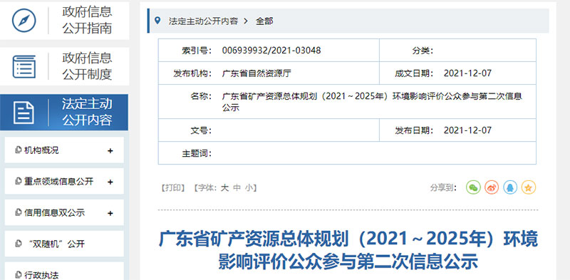 近日,廣東省自然資源廳官網(wǎng)公示了《廣東省礦產(chǎn)資源總體規(guī)劃(2021~2025 年)環(huán)境影響報告書》,涉及到了海砂出讓、礦山企業(yè)、石場及石料產(chǎn)能,以及機制砂產(chǎn)能,建設綠色礦山,形成礦產(chǎn)資源開發(fā)利用與環(huán)境保護協(xié)調的綠色礦業(yè)發(fā)展新格局。