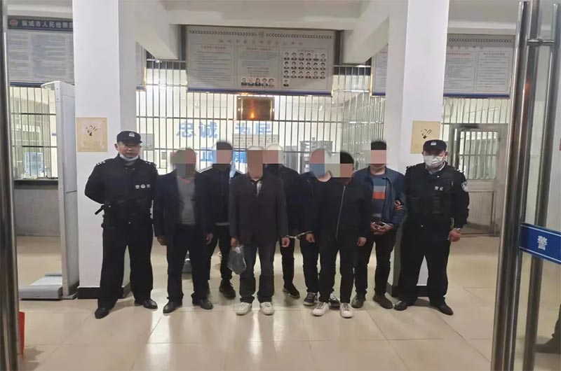 民警得知這一情況后,迅速成立專項(xiàng)調(diào)查組展開行動。通過調(diào)查取證,民警掌握了該采砂團(tuán)伙的大量證據(jù)。2021年10月30日,麻城警方雷霆出擊,成功抓獲了以肖某為首的團(tuán)伙成員共9人,現(xiàn)場扣押鏟車兩臺,對講機(jī)四部,一舉將這個長期盤踞在新洲、鐵門、歧亭、宋埠、中館驛一帶的盜砂犯罪團(tuán)伙抓獲。